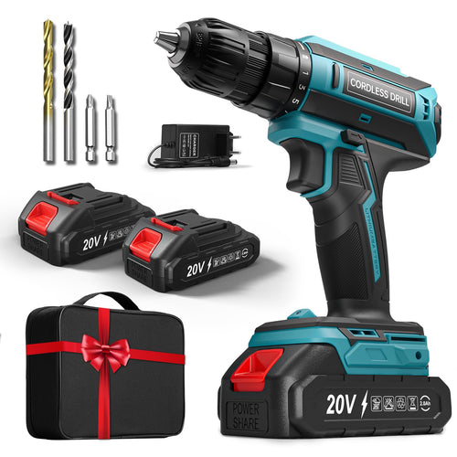 Akkuschrauber mit 2x 2000mAh Akkus, 20V Akku Bohrschrauber Set 42Nm Max, 2-Gang Akku-Bohrmaschine, Kompatibel mit Werkbohr Akku, 25+1 Drehmomentstufen, 10mm Bohrfutter, LED-Licht, Für Reparatur und DIY